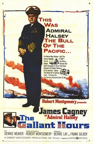 Spolupráce mezi „vzájemnými oblíbenci“, hercem Jamesem Cagneyem a režisérem a hercem Robertem Montgomerym, kulminovala v roce 1960, právě ve snímku Hodiny odvahy, jenž je v zásadě polodokumentární dramatizací několika týdnů života slavného amerického admirála Halseye a jeho činů v pacifických bojích za druhé světové války. Cagney zde excelentním způsobem ztvárnil válečného hrdinu, admirála „Bulla“ Halseye. Těsně před odchodem do důchodu vzpomíná Halsey na svůj osudový válečný zážitek: svůj pětitýdenní souboj s japonským admirálem Yamamotem (James T. Goto) v roce 1942. Halsey tehdy velel americkým námořním jednotkám v Pacifiku a podařilo se mu dosáhnout klíčového vítězství u Guadalcanalu. Spíše než na bitvu samotnou se však snímek zaměřuje na její účastníky, a představuje tak vlastně charakterovou studii neobyčejného amerického vojáka. Další výraznou složku filmu tvoří vokální doprovod Kena Darbyho a jeho skupiny King’s Men Quartet.(oficiální text distributora)