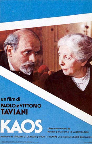 Čtyři tváře Sicílie. Italský film natočený na motivy Novel na celý rok Luigiho Pirandella.Prolog: Vysoko ve skalách chytí pastýři krkavce, sedícího jako samička na vejcích. To je pro ně důvod, aby ptáka začali týrat. Házejí po něm vejce a nakonec mu na krk uvážou zvonec. Krkavec krouží nad krajinou, ze své výše pozoruje „chaos" lidských životů a duší. A tam, kam zamíří svůj let, se po čtyřikráte odehraje příběh... „Jsem synem Chaosu. Ne přeneseně, zcela skutečně. Narodil jsem se ve vsi poblíž hustého lesa, kterému místní lidé říkali Cavusu, což je nářeční zkomolenina řeckého slova „chaos"." Těmito slovy Luigiho Pirandella je uveden snímek Kaos Paola a Vittoria Tavianiových. Čtyři příběhy filmu, jeho prolog a epilog, převzali tvůrci z Pirandellova rozsáhlého cyklu Novely na celý rok (psal je v letech 1901–1919, souhrnně vyšly roku 1922), jenž měl podat co nejcelistvější obraz Sicílie a všech tamních společenských vrstev.Bratři Tavianiové si vybrali příběhy z venkovského prostředí a usilovali nejen o postižení přirozenosti, krásy, bizarnosti a krutosti tohoto mikrosvěta, ale i hodnot nadčasových: takřka mýtických forem myšlení a prožívání. Vyprávějí o matce, upínající se k synům v zámoří a odmítající toho, kterého má nablízku (Jiný syn), o manželovi, který zatajil před ženou svou chorobu podněcovanou úplňkem měsíce (Měsíční nemoc), o hrnčíři, jenž sám sebe uvězní v obřím džbánu (Džbán), o chudých horalech, dožadujících se vlastního hřbitova (Rekviem)... Vyprávějí o tom všem s klasickým nadhledem (ten je ostatně symbolizován leitmotivem letícího krkavce a pohledem z jeho perspektivy) a s neobvyklou, až udivující stylizací rytmu a obrazového ztvárnění. Sami bratři Tavianiové o Kaosu řekli: „...Pirandello ve vesnických povídkách přistupuje ke svým hrdinům s ostychem, respektem a soucitem k jejich těžké práci, s pochopením pro jejich pověry a předsudky. Nám se však zamlouvá ještě něco jiného: povídky, které jsme vybrali, nevymyslel autor, vyprávěla mu je jeho matka Maristelle... Jestliže Fellini tvoří skutečnost v divadle, my vytváříme divadlo ve skutečnosti. Proto milujeme Sicílii. Tam je epika vždy přirozená." (citace z polského Filmu 18/87, str. 15)(Česká televize)