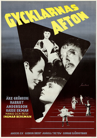 Cirkus Alberti přijíždí za hustého deště do města, ve kterém bude pořádat představení. Po cestě ale přichází o polovinu svých kostýmů a tak se ředitel cirkusu Albert, spolu se svou mladší přítelkyní Annou, rozhodnou vypůjčit si kostýmy v místním divadle. V něm se herec Frans pokusí Annu svést. Na poprvé neuspěje, ale rozepře mezi Annou a Albertem mu hrají do karet. Když jde Albert navštívit svou bývalou ženu Agdu, žárlivá Anna vyrazí za Fransem. Tato situace přivede ústřední dvojici k rozhodnutí, zda-li spolu chtějí dále žít a jestli je život u cirkusu opravdu tím, co je naplňuje.Večer kejklířů je dalším bergmanovým počinem z hereckého prostředí, ve kterém tentokrát staví do konfrontace cirkus s divadlem. Děj se odehrává v neurčitém prostředí a čase. Všudypřítomné rozepře mezi postavami a často nevlídné počasí pak dodávají filmu lehce pochmurnou atmosféru.(whitas)